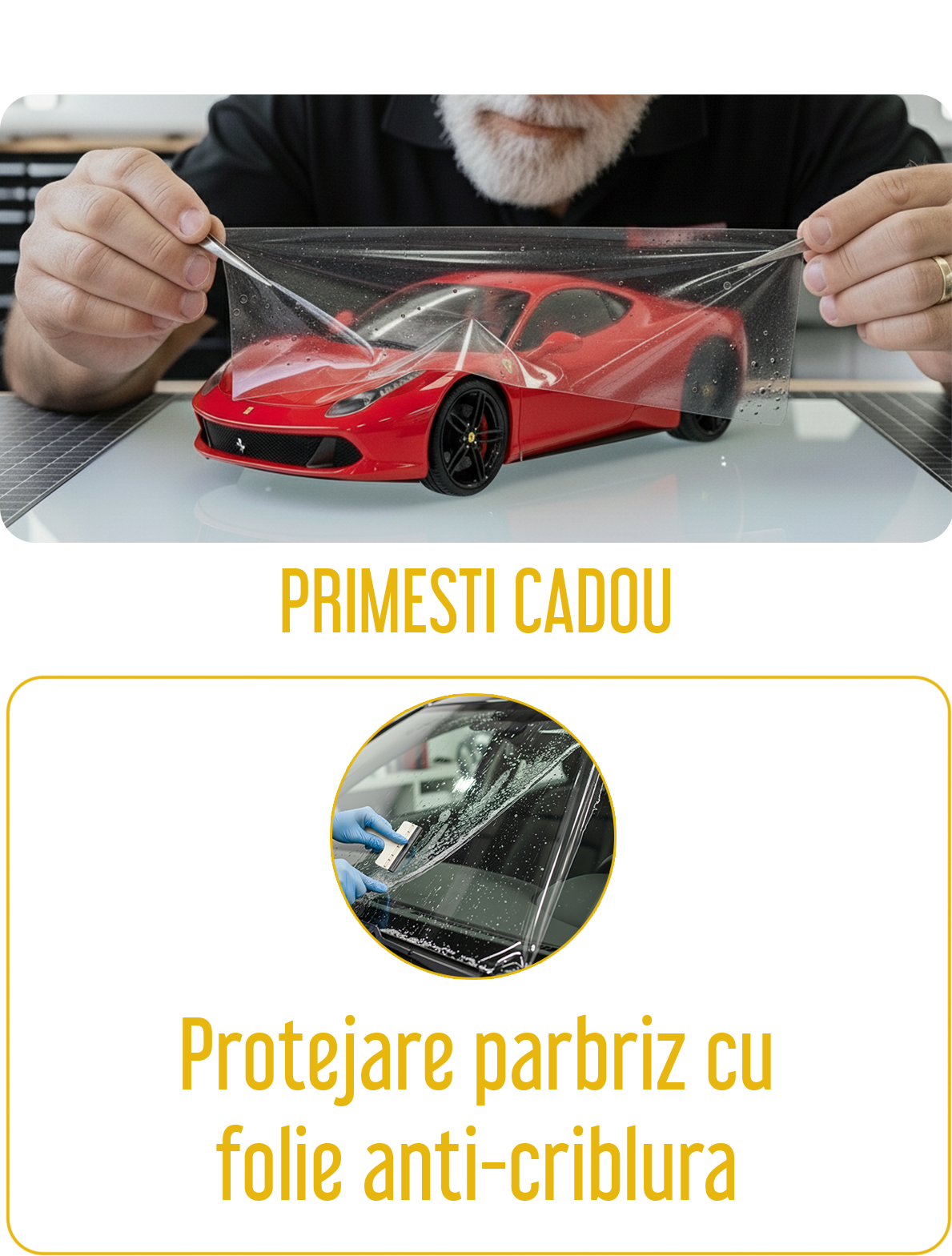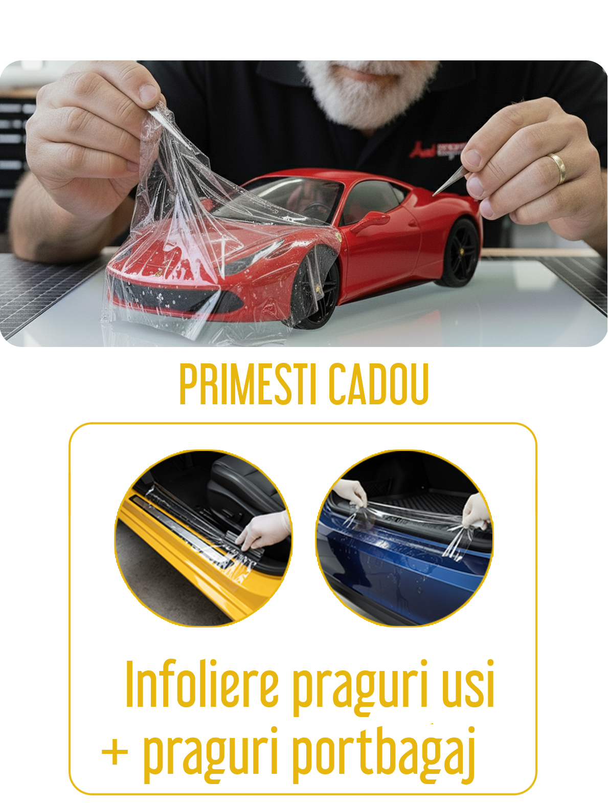 Stim ca iti place acel sentiment cand iti admiri masina noua, proaspat spalata, fara zgarieturi sau urme de la pietre sau alte lovituri. Multi ne povestesc, ca ar da totul, doar ca masina lor sa ramana noua si stralucitoare, cu vopseaua in stare perfecta, chiar si peste multi ani. Asadar, ne-am gandit sa iti pregatim doua pachete de protectie care iti aduc CADOU-uri super utile!